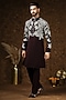 Featuring a brown kurta for boys in japanese fabric base with threadwork and hand embroidery. It is paired with pants. Accentuate it with a pair of mojaris, for evening receptions, grand celebrations, and festive gatherings, this attire is a statement of?refined?luxury.