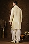 Light Yellow Georgette Stone Embellished Kurta Set For Boys