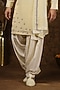 Featuring a light yellow kurta for boys in sequins georgette base with mirror and stone embellishments. It is paired with dhoti salwar pants and a sheer embroidered stole. Accentuate it with a pair of mojaris, for evening receptions, grand celebrations, and festive gatherings, this attire is a statement of?refined?luxury.