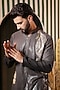 Midnight Black Georgette Embroidered Kurta Set For Boys