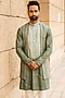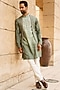 Pastel Pista Kurta Set With Embroidered Open Jacket For Boys