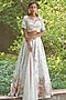 Featuring a light pastel green lehenga in organza silk blend and georgette base with embroidery. It is paired with an embroidered blouse and a dupatta. Accentuate it with statement jewellery and heels for weddings and pooja ceremony.
