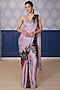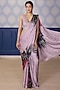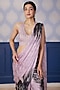 Featuring a lilac saree in satin base with sunflower print. It is paired with a chanderi blouse having print and foil stripe detail. Accentuate it with statement earrings, heels and a clutch for weddings.