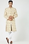 Beige Brocade Embroidered Sherwani Set