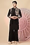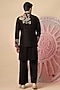Featuring a black nehru jacket in raw silk handloom base with embroidery. It is paired with a kurta and pants. Perfect wear for any wedding, sangeet or pre-wedding ceremony.