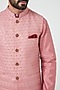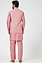 Featuring a blush pink jacket in silk blend base. It is paired with a matching kurta and pants.