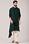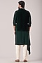Featuring a teal green kurta in terry rayon base with hand embroidery. It is paired with black trousers. Perfect attire for festive occasion or mehendi ceremony, exuding traditional charm and elegance.