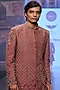 Featuring a carrot-colored sherwani in raw silk base with zari work. It is paired with palazzo pants. Perfect wear for a wedding or engagement ceremony.