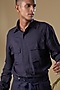 Featuring a deep blue shirt in cotton lycra base with flap pockets. It is paired with matching pants. This contains only two pieces.