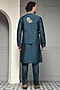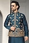 Featuring a deep teal nehru jacket in silk blend base with embroidery. It is paired with a kurta and trousers. Style it with shoes for a reception, wedding, sangeet or engagement ceremony.