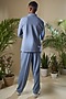 Featuring an ice blue jacket in lycra cotton base with motif embroidery. It is paired with matching pants. This contains only two pieces.