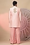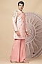 Featuring a light pink kurta in chanderi silk base with embroidery. It is paired with palazzo pants. Perfect wear for a festive occasion, wedding or engagement ceremony, exuding traditional charm and elegance.