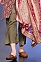 Featuring a maroon sherwani in premium velvet base. It is paired with olive green palazzo pants and a stole. Perfect attire for an engamgent ceremony or a wedding, exuding traditional charm and timeless elegance.