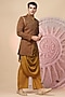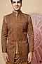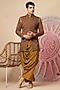 Featuring a mustard yellow jacket in handloom base with embroidery. It is paired with a kurta and pants. Perfect wear for any wedding, sangeet or pre-wedding ceremony.