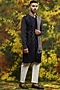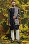Featuring a navy blue kurta in cotton and handloom silk base with pintucks and overlap detail. It is paired with pants. This attire would be an excellent fit for any festive occasion or sangeet ceremony.