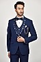 Featuring a navy blue blazer in terry rayon base. It is paired with a waistcoat, pants, a white shirt and a bow-tie. Perfect wear for office or formal events.