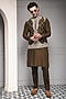 Olive Brown Linen Silk Blend Thread Embroidered Nehru Jacket Set