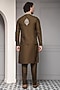 Featuring an olive brown nehru jacket in linen silk blend base with thread embroidery. It is paired with a kurta and trousers. Style it with shoes for a reception, wedding, sangeet or engagement ceremony.
