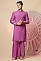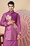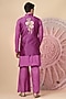 Featuring a purple jacket in chanderi silk base with embroidery. It is paired with a kurta and pyjama pants. Perfect wear for any wedding, sangeet or pre-wedding ceremony.