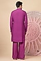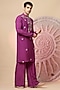 Featuring a purple kurta in muslin base with embroidery. It is paired with palazzo pants. Perfect wear for a festive occasion, wedding or engagement ceremony, exuding traditional charm and elegance.