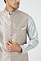 Featuring a silver bundi jacket in silk blend base. It is paired with a grey kurta and pants. Perfect wear for a festive occasion or sangeet ceremony.