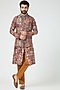 Featuring a wine jacket in a silk blend base with embroidery. It is paired with a matching kurta and mustard pants.