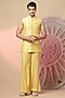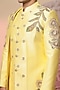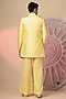 Featuring a yellow jacket in chanderi silk base with embroidery. It is paired with a kurta and pants. Perfect wear for any wedding, sangeet or pre-wedding ceremony.