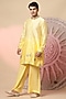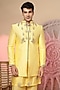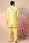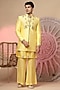 Featuring a yellow jacket in chanderi silk base with embroidery. It is paired with a kurta and pants. Perfect wear for any wedding, sangeet or pre-wedding ceremony.