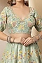 Featuring a multi-colored lehenga in blended silk base with thread, mirror and sequins embroidery. It is paired with an embroidered blouse and a net dupatta. Accentuate it with statement earrings and heels for weddings or sangeet ceremonies.