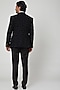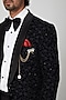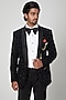 Featuring a black tuxedo in velvet base with thread and swarovski embroidery. It is paired with matching pants and a waist belt.