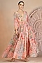 Featuring a pastel pink anarkali in georgette base with floral print. It is paired with muslin silk floral printed pants. Accentuate with statement earrings and heels for a festive occasion.