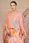 Featuring a pastel pink kaftan in muslin silk base with floral and patchwork. It is paired with wide leg pants. Accentuate with statement earrings and heels for a festive occasion.