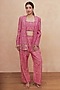 Pink Brocade Printed & Mirror Hand Embroidered Blazer Set