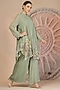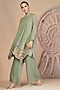 Featuring a pisat green kurta in muslin silk base with hand embroidery. It is paired with palazzo pants. Accentuate with statement earrings and heels for a festive occasion.