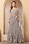 Silver Net Hand Embroidered Pre-Draped Gown Saree Set