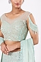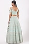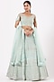 Featuring a sky blue lehenga in organza base with mirror embroidery. It is paired with a matching blouse and a net dupatta.