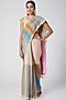 Featuring a multi colored saree in handwoven silk base. It has an attached blouse piece.