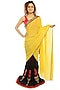 Featuring a yellow and black draped saree set in lycra base with motifs embroidery.