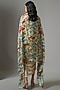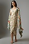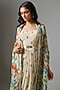 Featuring a beige draped dress in crepe base with hand embellishments. It is paired with a blue cape having digital print. Accentuate it with dangler earrings and block heels for festive celebrations or garden parties.