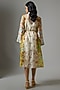 Featuring a beige and yellow shirt dress in chanderi base with digital print and hand embellishments. Accentuate it with dangler earrings and block heels for a festive look or garden parties.