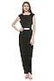Featuring a black dress in crepe base with side cuts. It is paired with a matching jacket having mirror and thread embroidery including a tie-up.