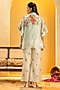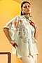 Featuring a blue shirt in chanderi base with embellishment. It is paired with printed straight pants. Accentuate it with stud earrings and wedges for an evening look.