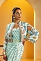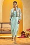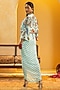 Featuring a blue draped dress in crepe base with metal buckle detail and print. It is paired with an embellished jacket. Accentuate it with hoop earrings and block heels for an evening look.