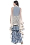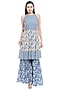 Featuring a blue and off white top in crepe base with print. It is paired with matching sharara pants and a net cape.