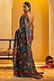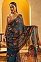 Featuring a blue pre-stitched saree in organza base with embellishment. It is paired with a red malaysian silk V-neck blouse. Accentuate it with dangler earrings and block heels for wedding ceremonies.