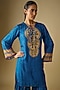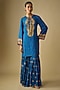 Featuring a blue kurta in silk base with embroidery. It is paired with silk sharara pants. Accentuate it with kundan polki earrings and embellished heels for festive dinners, weddings or sangeet ceremony.