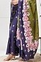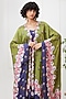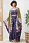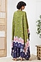 Featuring a green and blue kimono jacket in muslin slub base with print. It is paired with a blouse and pants. Style it with block heels and hoop earrings for festive occasions.