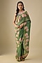 Green Organza Floral Printed Pre-Stitched Saree Set
