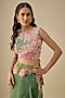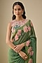 Featuring a green pre-stitched saree in cotton net and organza base with floral print. It is paired with an embellished blouse. Accentuate it with dangler earrings and heels for festive occasions, mehendi or sangeet ceremonies.
