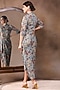 Featuring a green maxi draped dress in crepe base with print, sequins work, and a metal belt.